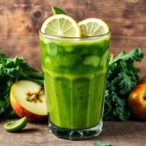 Green juice is a nutrient-dense beverage made from fresh vegetables, primarily leafy greens like kale and spinach. This drink is packed with essential vitamins and antioxidants, which support overall well-being. Green juice is vital for hydration and energy maintenance, making it a popular choice for health-conscious individuals. Common ingredients in green juice include: